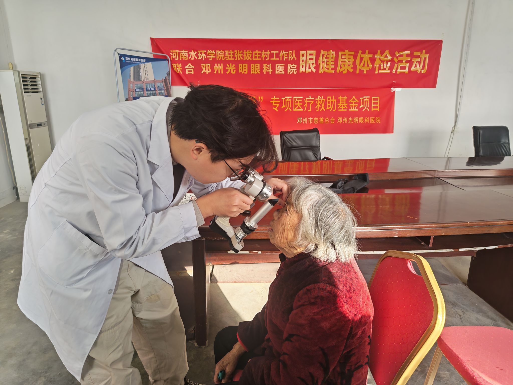 为响应健康帮扶号召,将优质医疗服务送到群众身边,12月1日,ylzzcom永利总站线路检测驻张拔庄村工作队联合邓州光明眼科医院在张拔庄村开展“健康帮扶暖民心,眼科义诊护光明”公益体检活动,切实将专业眼科服务送到群众家门口。