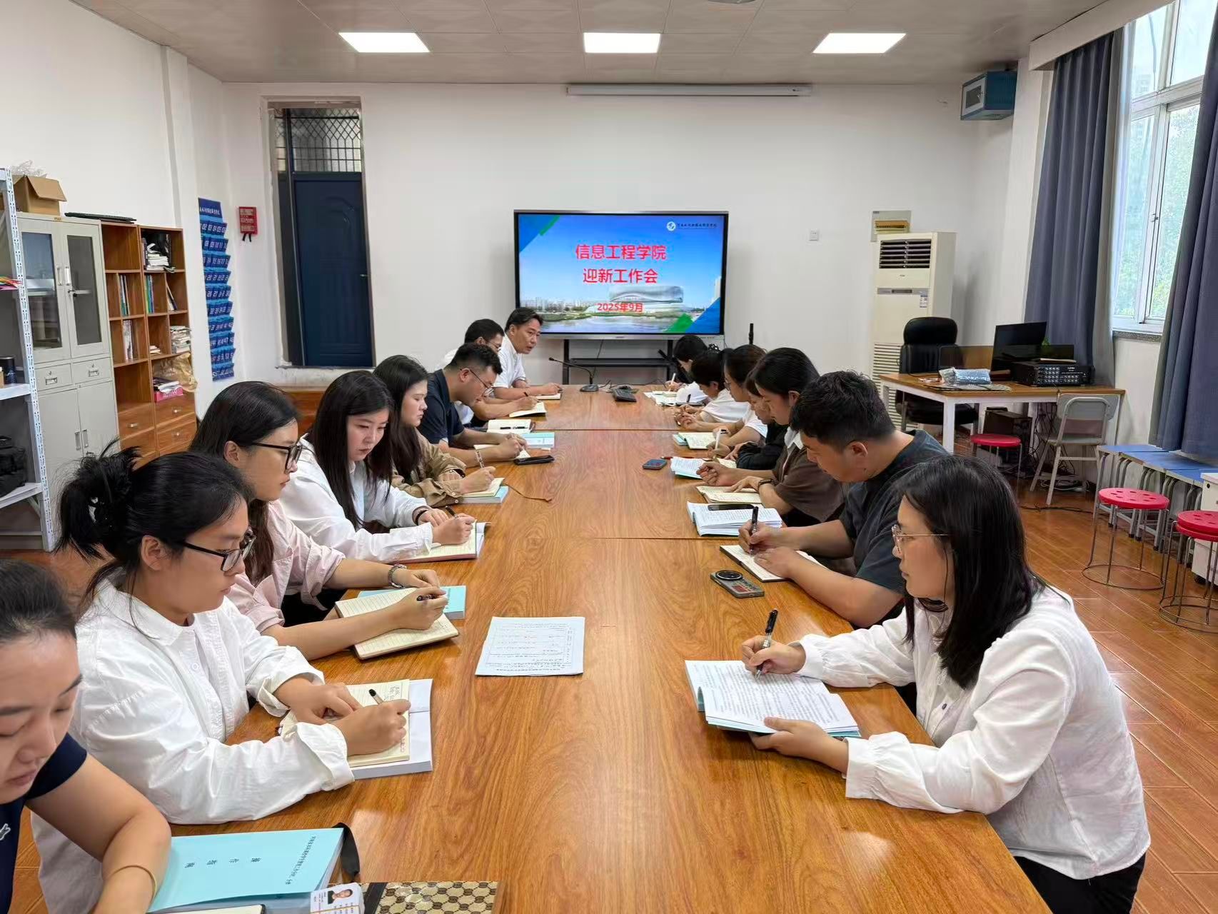 为扎实推进2025级新生服务保障工作,信息工程学院于9月9日、10日连续召开迎新工作会、河南高校学生管理工作分时分类操作指南专题研讨会、新学期学生干部培训会暨迎新工作动员会。学院党总支书记周颖琦全程主持并作重点部署,全体辅导员、班主任及全体团学干部分批次参会。