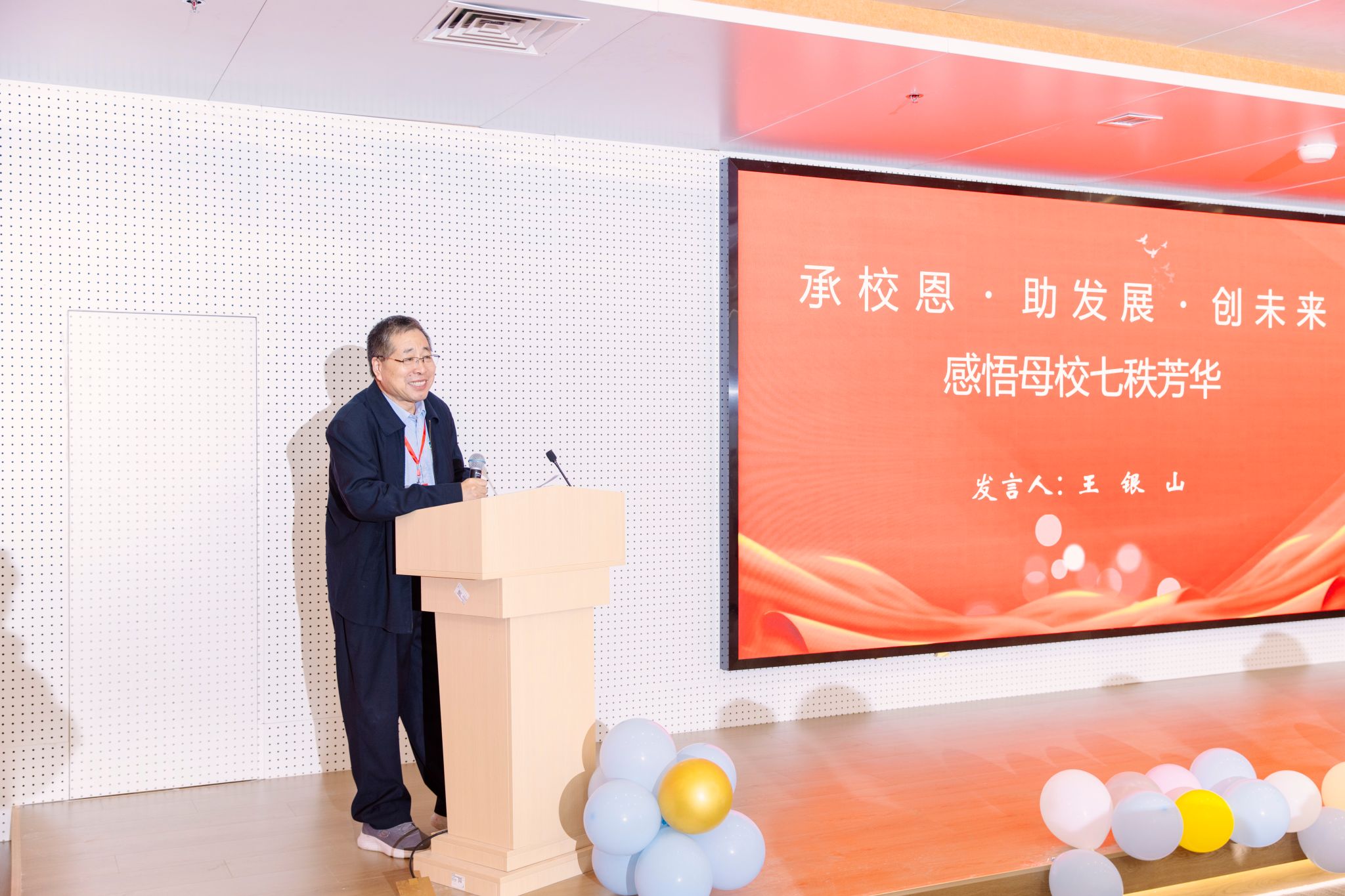 以《承校恩·助发展·创未来》为题,王银山分享了四十年来投身工程质量检测事业的深刻感悟。他不仅主持或参与了包括南水北调在内的百余项国家重点工程,还主编、参编多部行业标准,累计培养技术人才七万余人次。他感言,正是母校赋予的敬畏之心与严谨态度,铸就了他敢于对任何工程裂缝说“不”的坚实底气。
