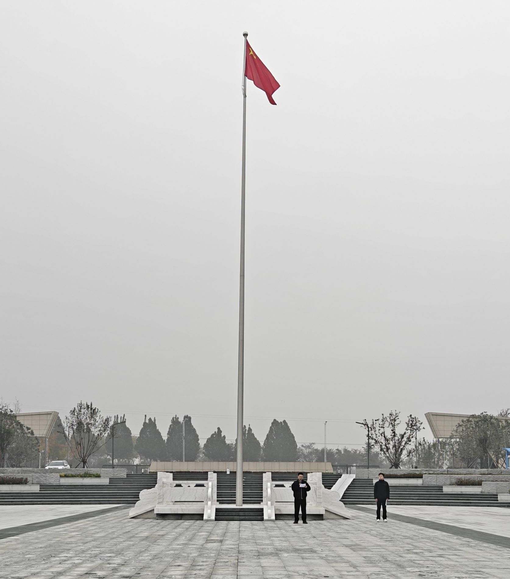 早晨8点升旗仪式正式开始。国旗护卫队迈着铿锵有力的步伐,护送国旗步入会场。五星红旗伴随着《义勇军进行曲》冉冉升起,全体师生肃立,行注目礼。