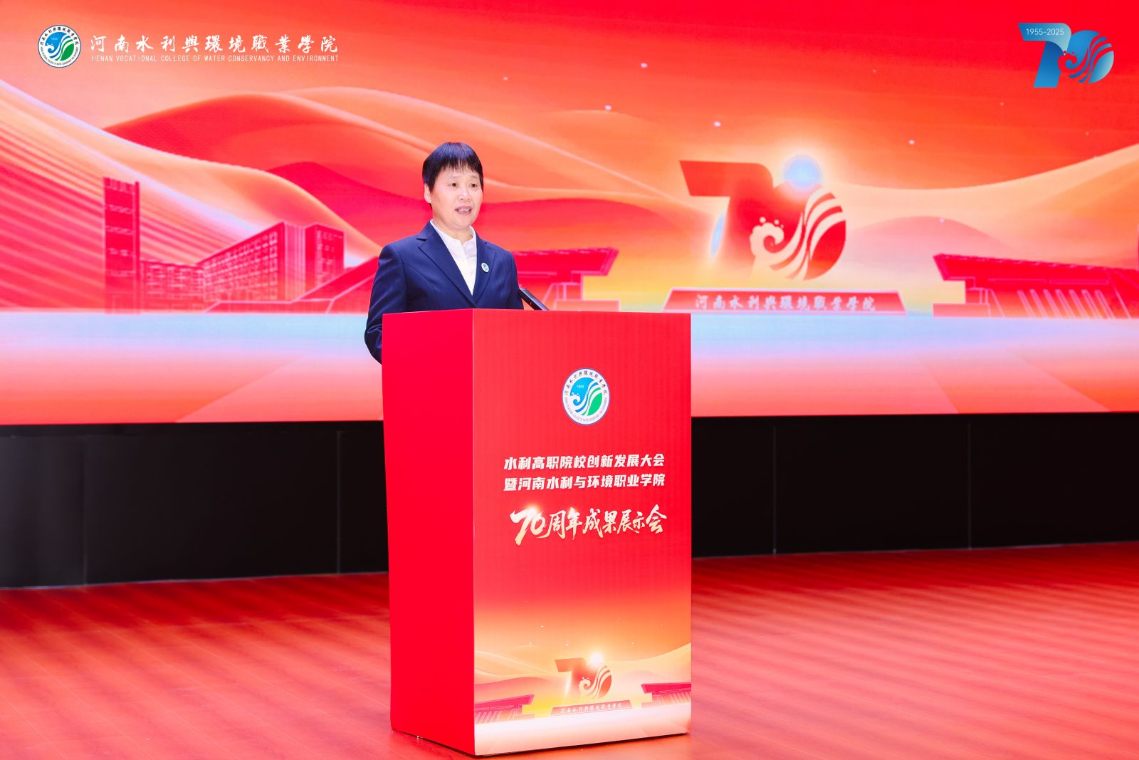 河南省教育厅党组成员、省委教育工委专职副书记刘林亚在致辞中表示,“在职业教育发展进程中,河南水环学院始终立足中原大地,聚焦产业需求,为区域经济发展培养了大量下得去、留得住、用得上的高素质技能人才。希望学校以建校70周年为新起点,承七秩基业,开未来新篇,展现更大作为。”