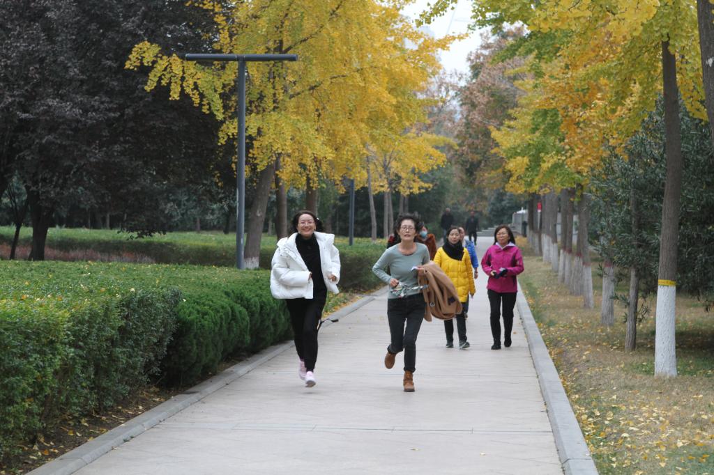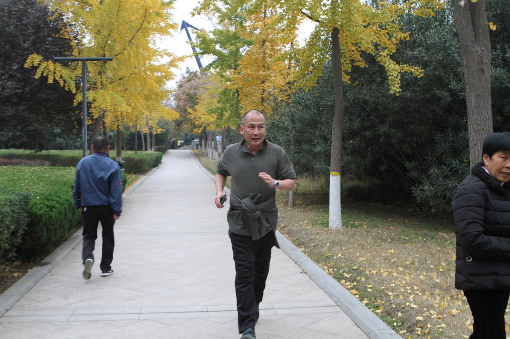 花园路校区在东风渠畔进行。初冬的东风渠畔,银杏树黄得金光闪闪,黄得雍容华贵,使人神情气爽。四公里的路程,大家甩臂迈步,一边观赏秋冬美景,一边享受健步走带来的激情与活力。