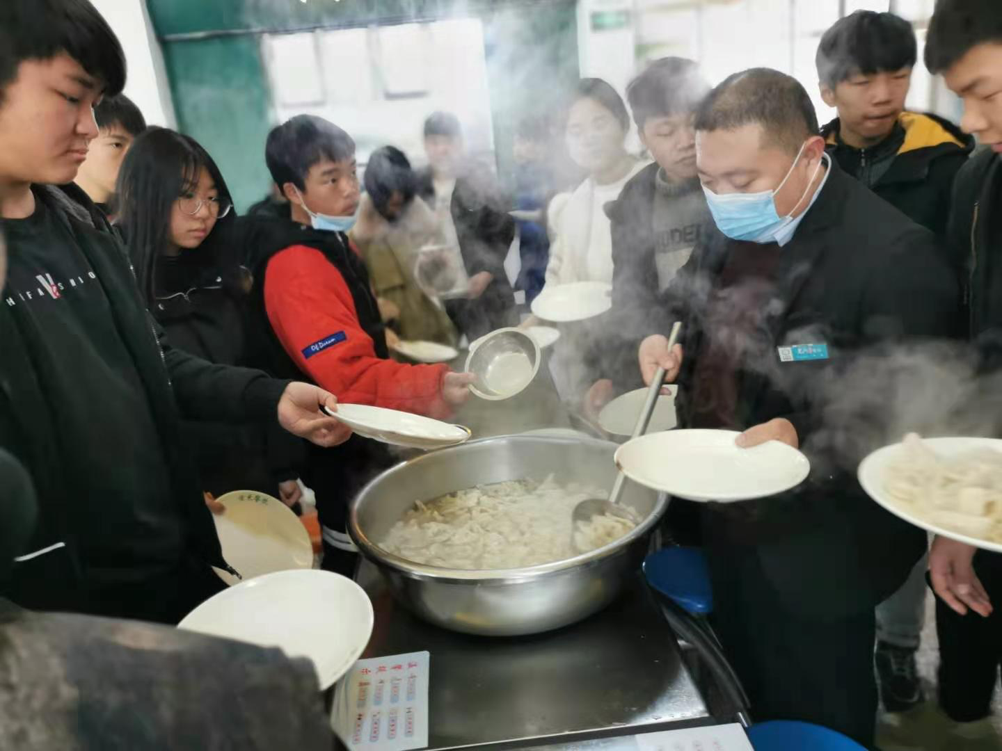 经过两个小时的努力,一盘盘热气腾腾的饺子出锅,大家享受着自己的劳动成果,感受着水环大家庭的温暖,展露出了快乐的笑容,也体验到了冬至的节日气氛。