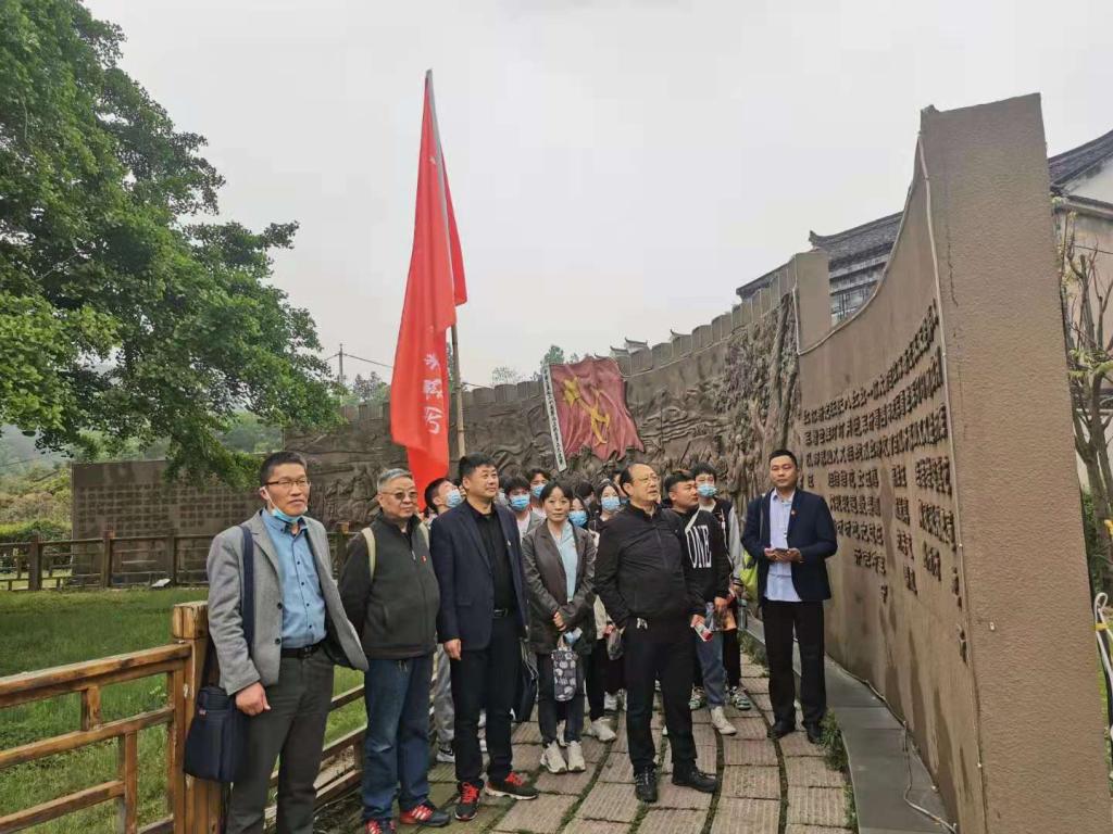 4月25日,信阳校区教工党支部全体党员和学生干部到罗山县何家冲红色教育基地,开展“ 学党史、强信念、育新人”党史学习教育。