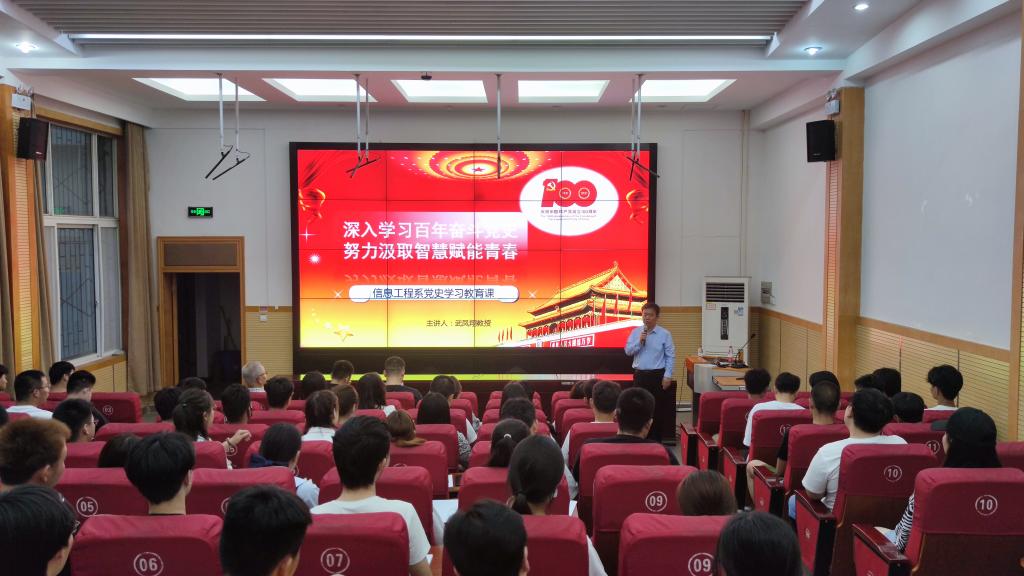 5月13日,信息工程系党总支开展“学习党史 赋能青春”党史学习教育,由系党总支书记武凤翔主讲,系辅导员、党员发展对象和入党积极分子100余人参加。
