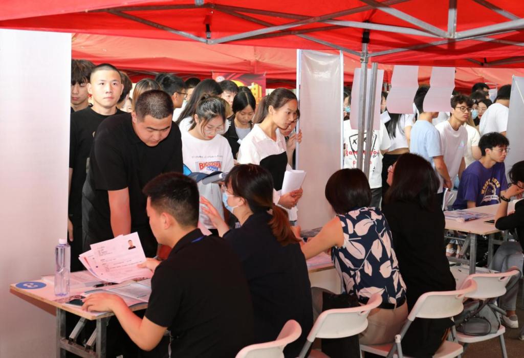 5月25日,ylzzcom永利总站线路检测2021年校园夏季双选会在花园路校区隆重举行,校长郑志宏出席并宣布双选会开幕,副校长黄功学、蒋彦成,有关部门负责人和广大毕业生参加开幕式。本次双选会有来自全国217家用人单位齐聚校园选拔英才,为毕业生提供就业岗位16721个。现场共有4172名毕业生参加双选会。本次双选会还采用全新的o2o模式,“线下+线上”双渠道进行,并设立企业“二维码墙”,通过手机扫码即可查看企业简介及岗位信息,方便学生在线投送简历。