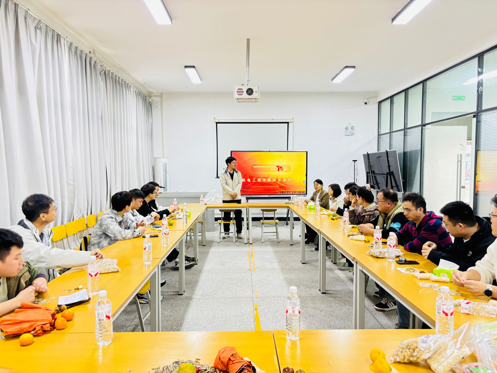 “饮水思源,不忘来路”,校友自我介绍环节成为座谈会的温情亮点。来自11级至22级的校友代表依次发言,并结合自身经历,分享了毕业班级、现工作单位与岗位,以及职业发展路上的成长感悟。他们的故事不仅展现了“机电人”踏实奋进、敢闯敢拼的精神风貌,更让在场师生深切感受到校友对母校的深厚情谊与殷切期望。
