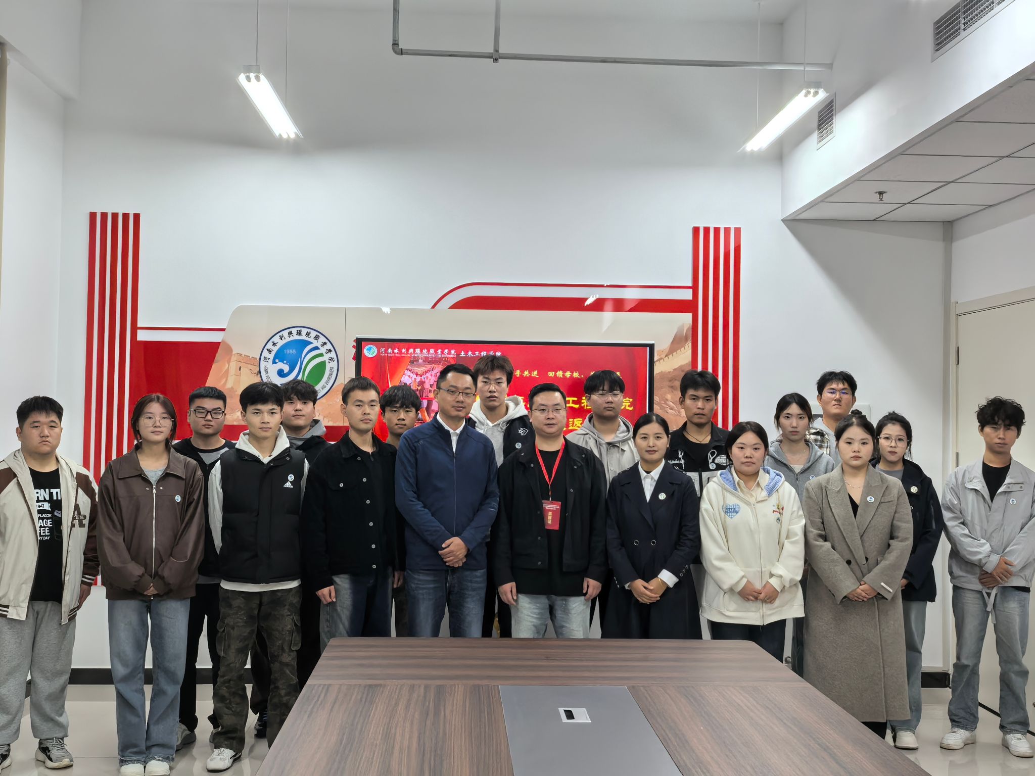 活动最后,吴仕祺校友与师生共同合影,镜头定格下一张张灿烂笑脸,也留存下校友与母校双向奔赴的深厚情谊。此次校友返校活动,不仅为学院带来了教学设备的物质支持,更以榜样力量点燃了学生的学习热情与创业信心,为土木工程学院深化创业就业指导、推进校企协同育人写下生动注脚。