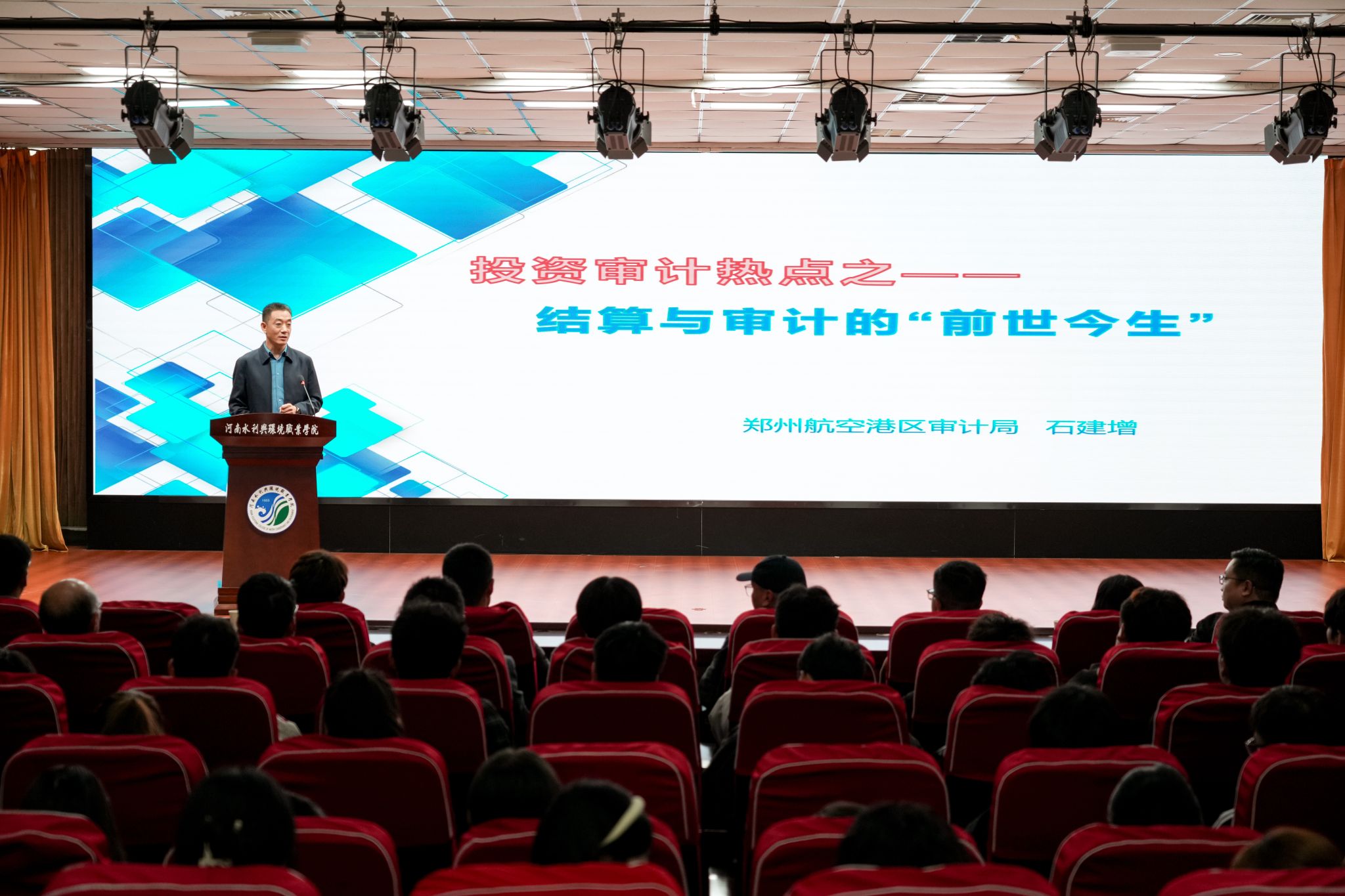 在“校友讲堂”系列座谈会上,1999届校友、郑州航空港区审计局投资科长石建增,以“投资审计热点之一——结算与审计的‘前世今生’”为题作专题报告。他结合自身从业经历,分享了“坚守数据真实底线、拥抱技术革新”的行业核心认知,并特别强调,母校赋予的严谨务实态度与终身学习理念,是自己在行业内行稳致远的根本保障。