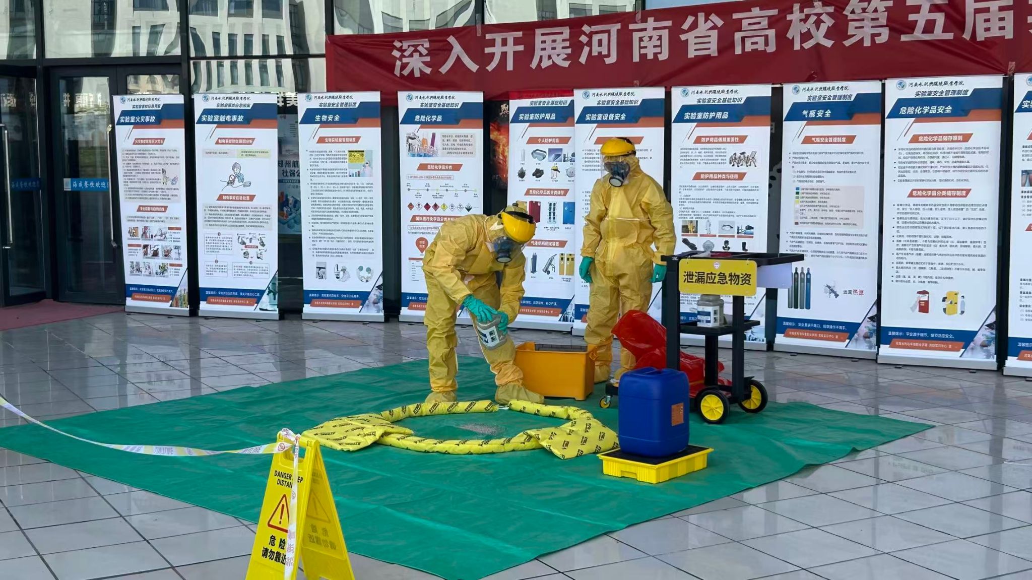 11月11日,ylzzcom永利总站线路检测实验室安全知识宣传与危化品泄漏事故应急演练活动在航空港校区湖光苑门前广场顺利举行。活动由实验实训中心精心策划承办,以“线上+线下”融合模式开展,既强化安全知识普及,又锤炼应急处置能力,为校园实验室安全筑牢屏障。