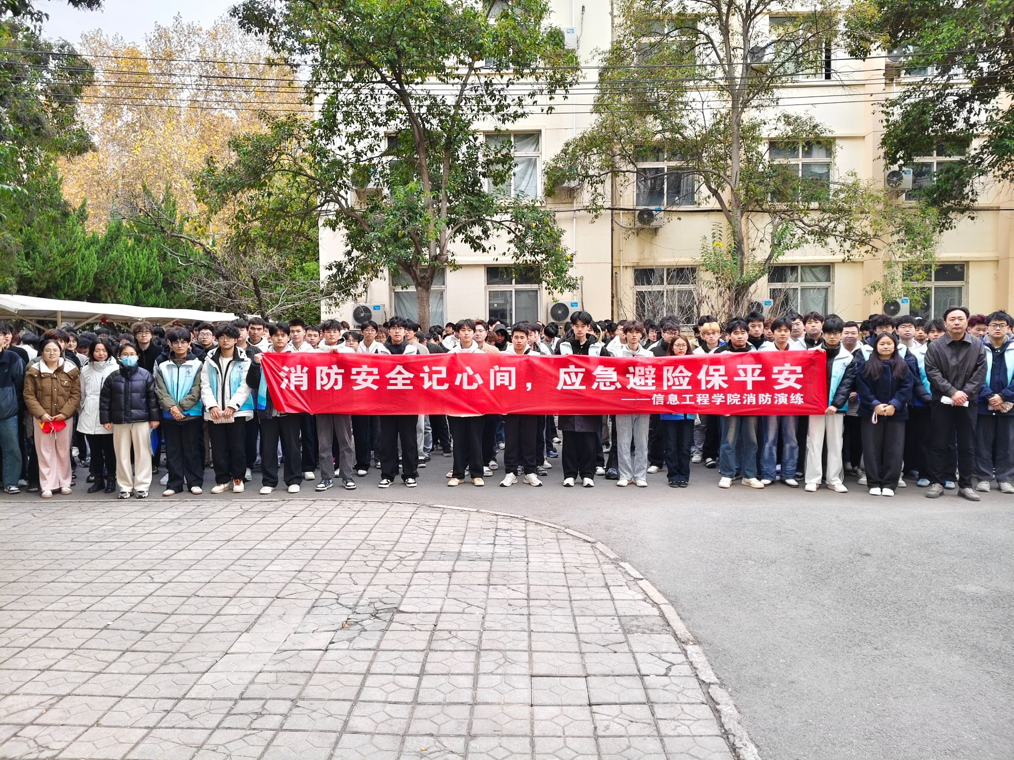 为强化校园消防安全管理,增强学生应急避险能力与安全防范意识,11月17日,信息工程学院于花园路校区一号公寓楼开展消防逃生演练。