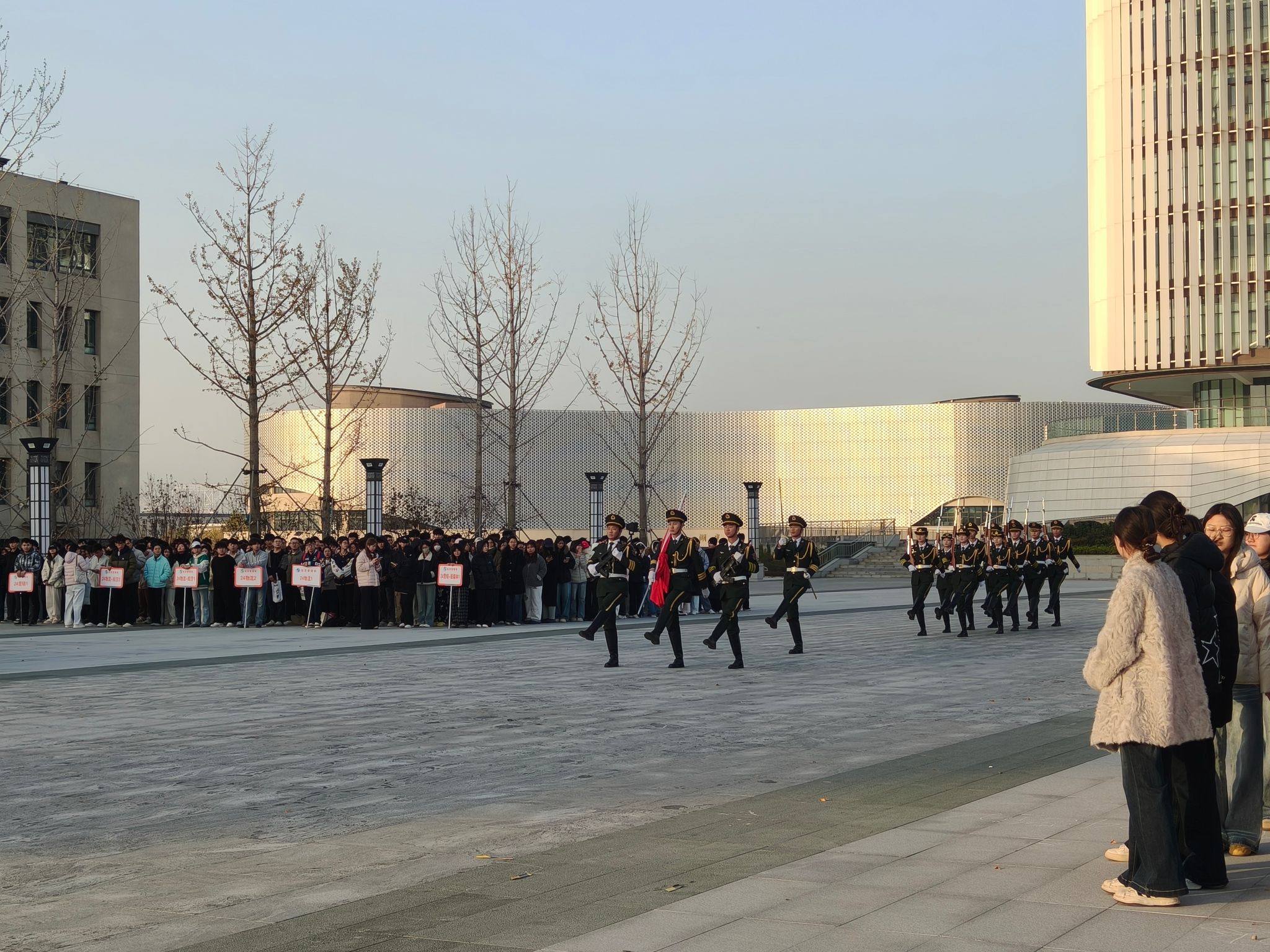 11月24日,经济管理学院在航空港校区东广场举行升旗仪式,全体学管老师及在校学生参加。