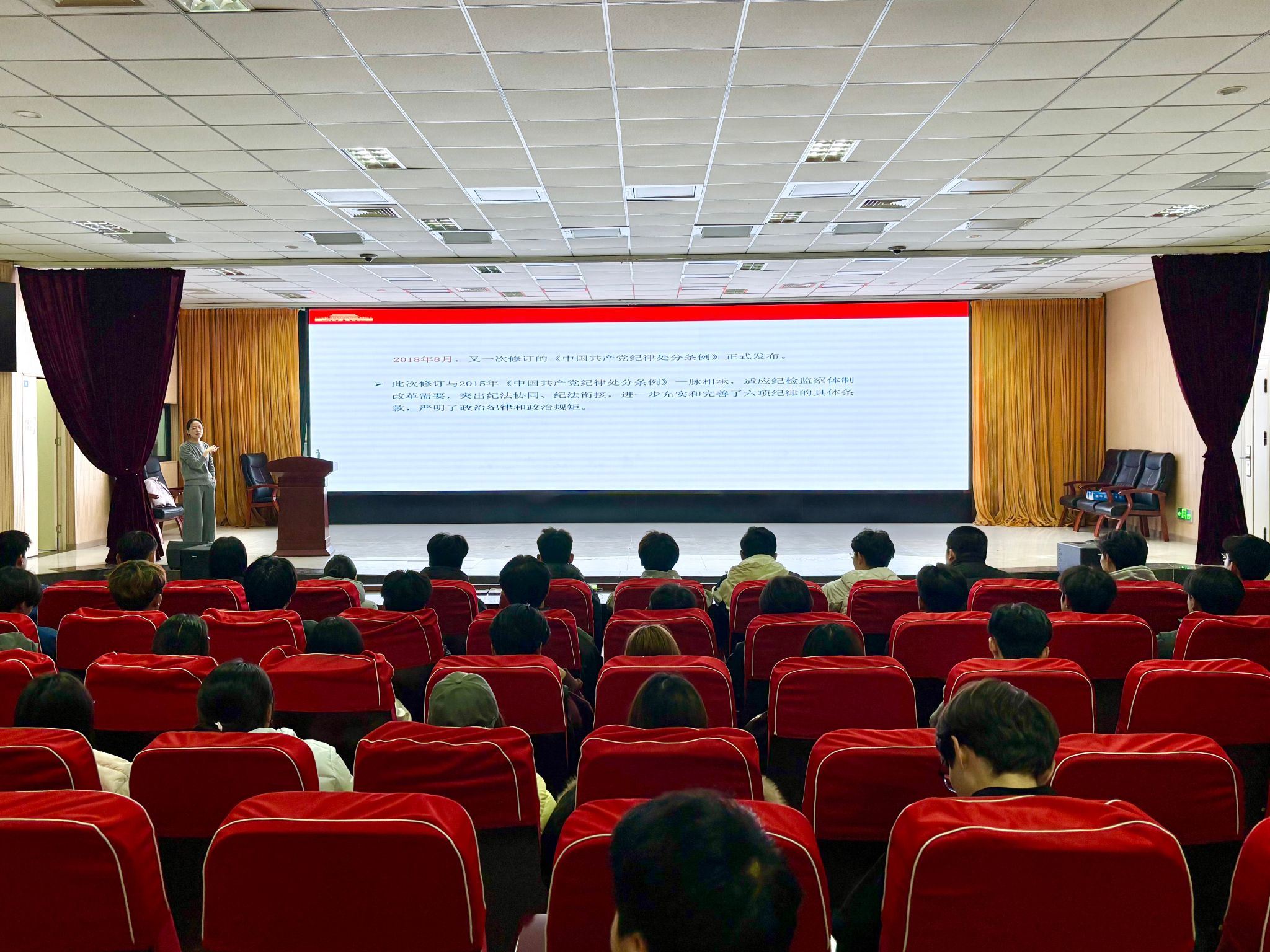 11月27日,测绘地理信息学院开展“以严的基调全面加强纪律建设”主题党课。此次党课由学院群团办公室主任谭莹主讲,全体入党积极分子以及递交入党申请书的学生参加。